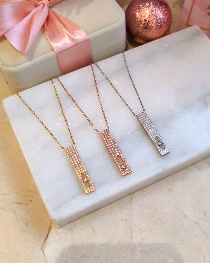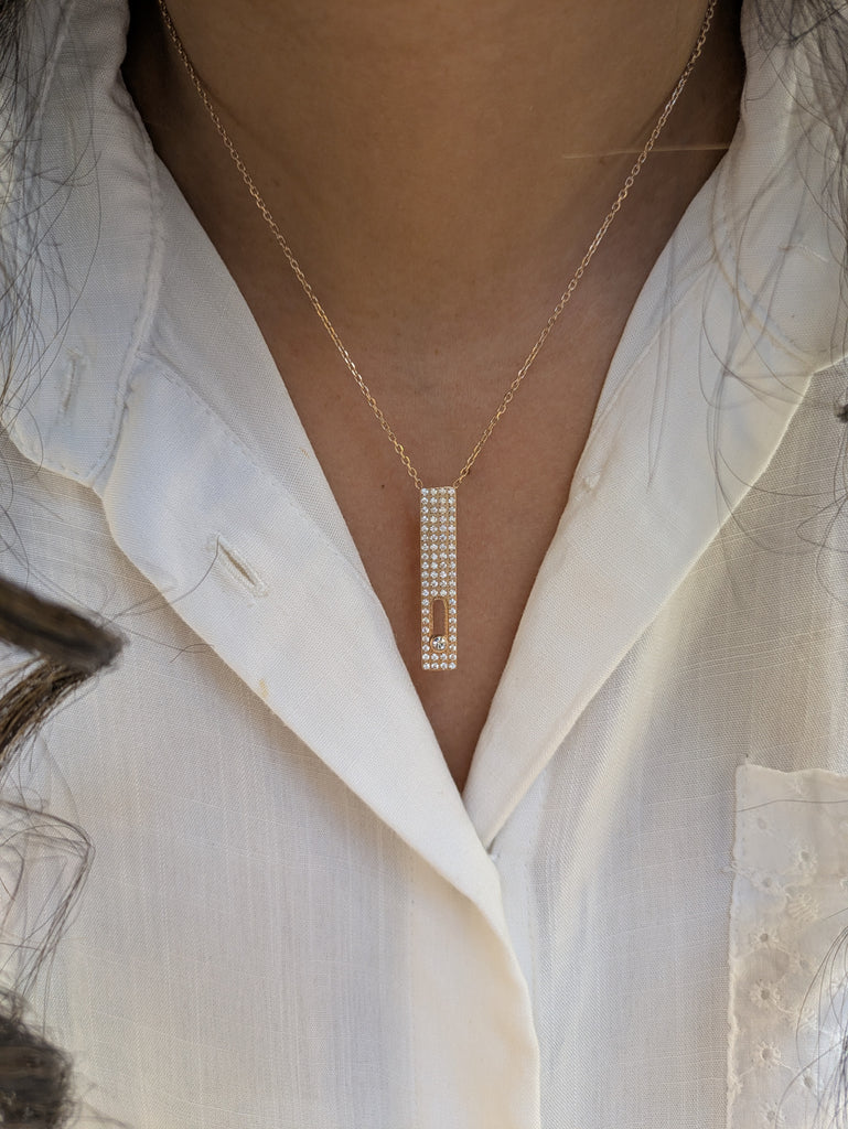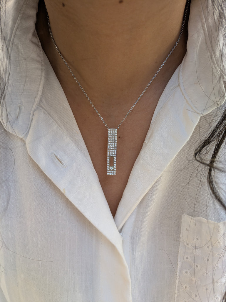 Collier raffiné au design vertical serti de cristaux lumineux, réalisé en acier inoxydable de haute qualité. Résistant à l’eau et à l’oxydation, il conserve durablement son éclat sans ternir. Sa chaîne fine et son pendentif brillant apportent une touche moderne et chic, idéale au quotidien comme pour les occasions spéciales. Un bijou intemporel à porter seul ou en superposition pour un look tendance et élégant.